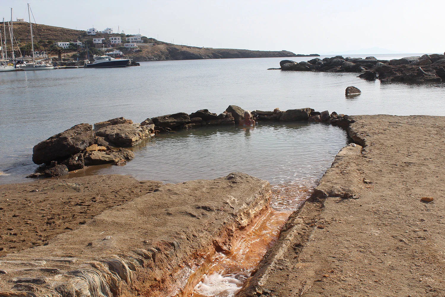 Loutra, auf der kleinen Insel Kythnos (Nähe Athen), ist berühmt für ihre Heilquelle. Bereits im Altertum wurde die heisse Quelle zur Behandlung von Rheuma genutzt.