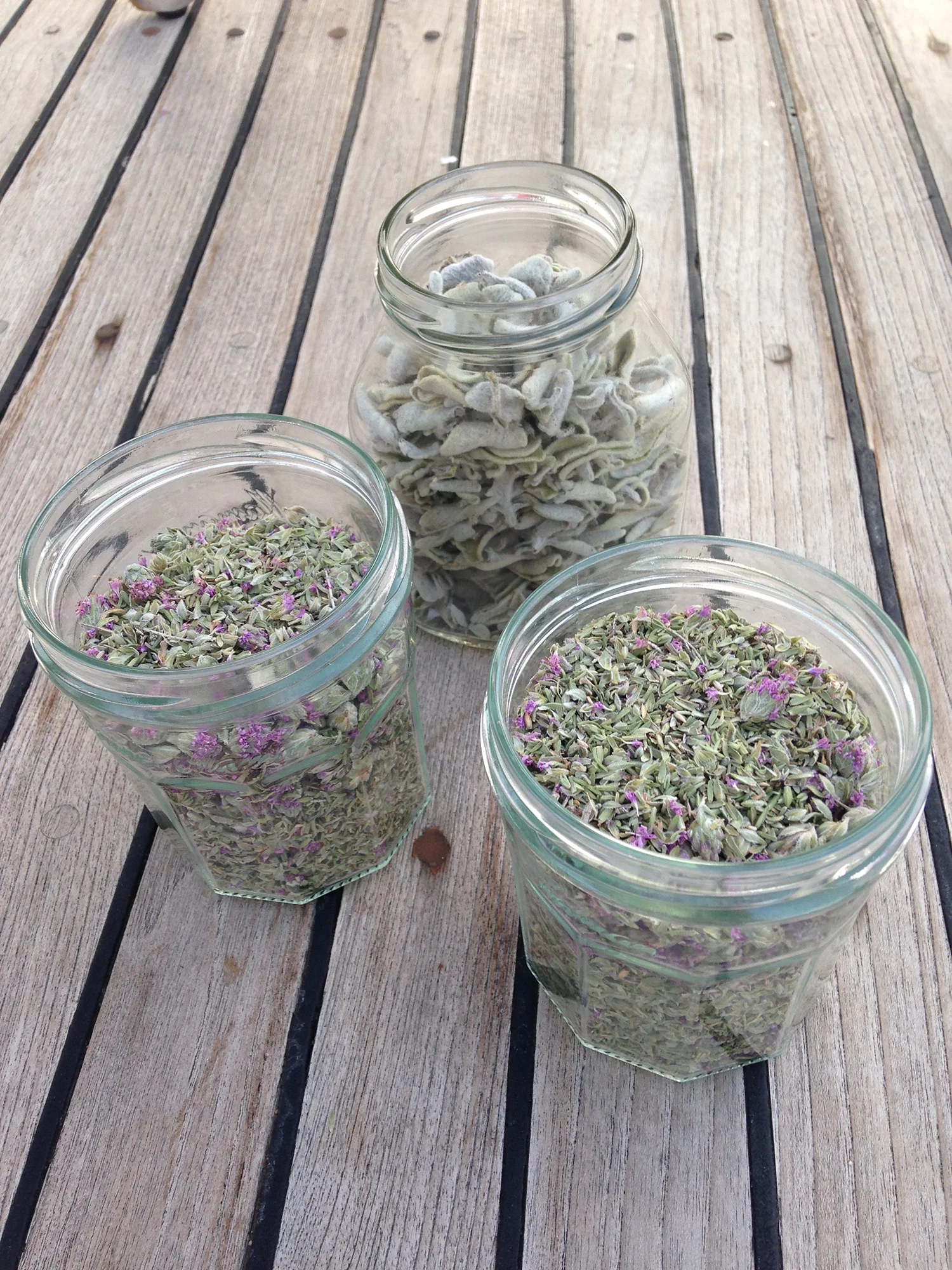 Auf dem Weg haben wir aus unserem Naturgarten Oregano und Salbei gepflückt.